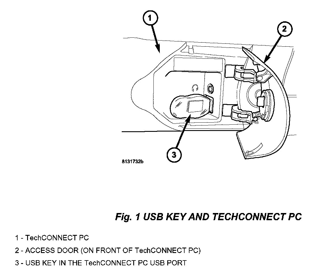 2. Insert the USB Key, into the USB port on the TechCONNECT or equivalent PC (Fig. 1).