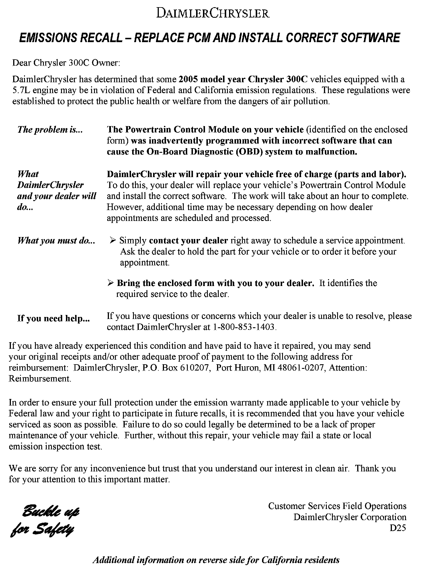 Recall - PCM Replacement/Reprogramming