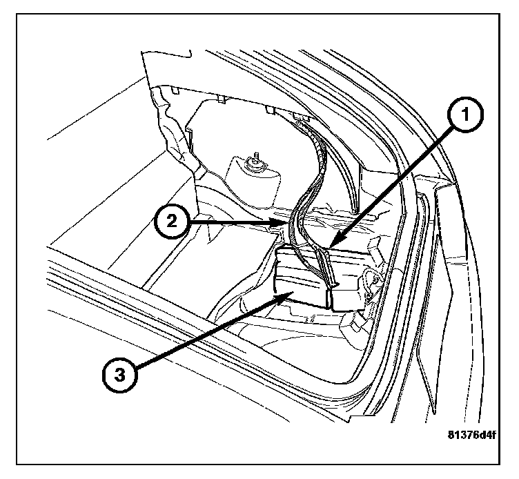 1. Install the central locking pump/security system module (3) into the trunk and connect the air lines (2) and the electrical harness (1).