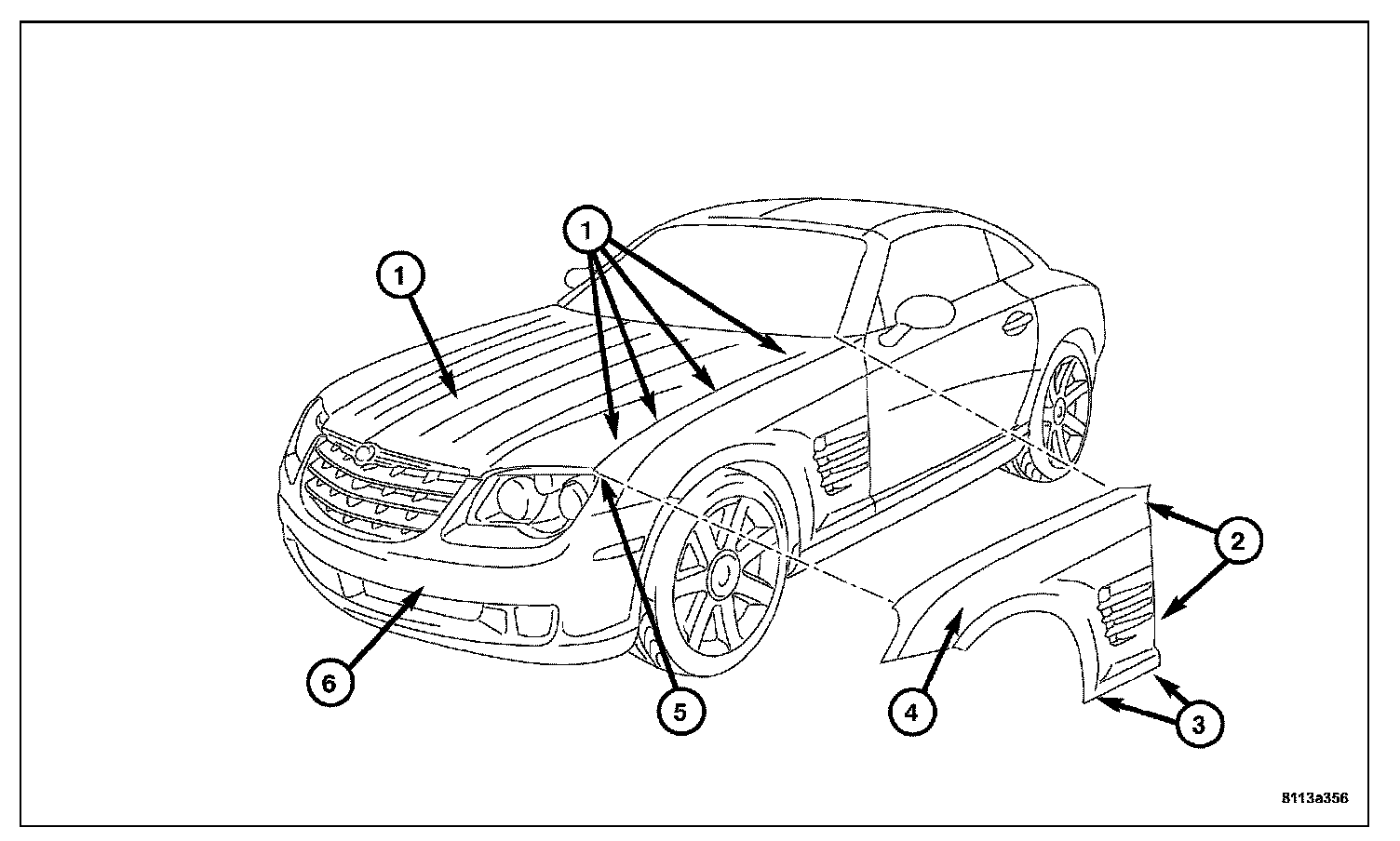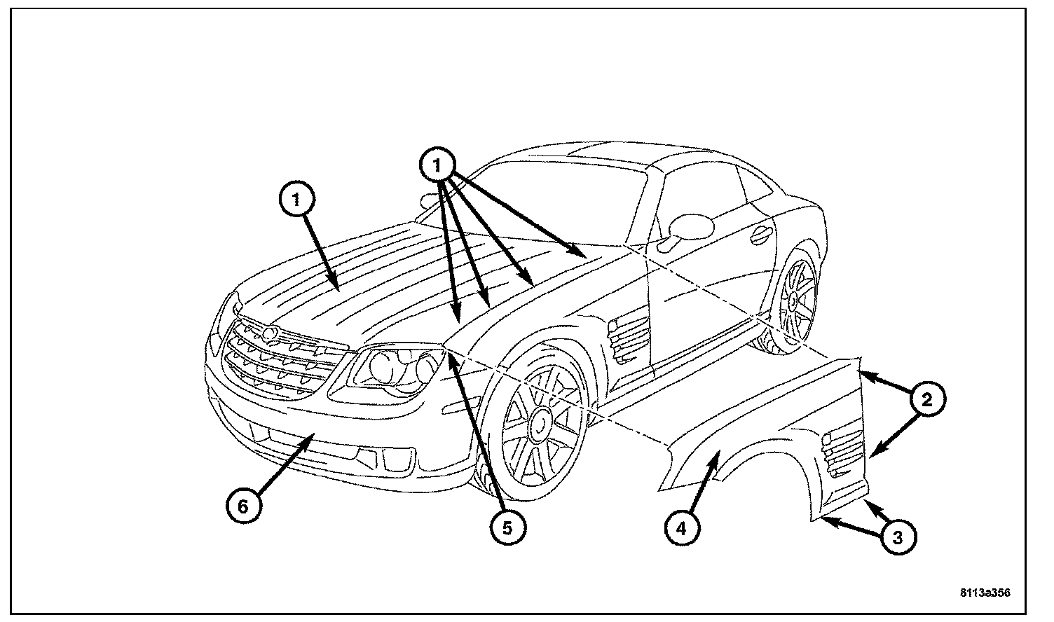 2. Remove the front fascia (6). Refer to Front Bumper.