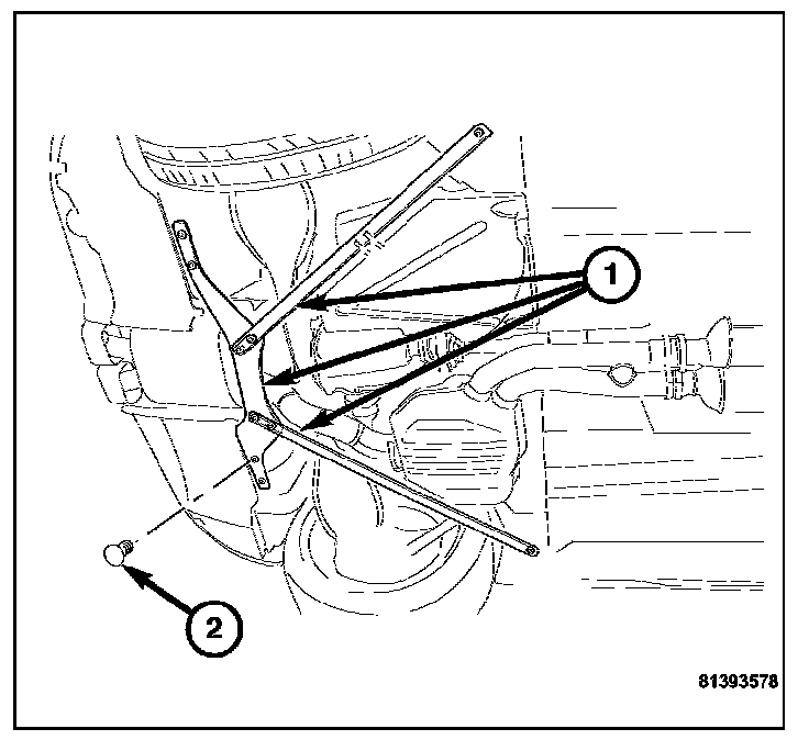 3. Remove the brace (1) from the vehicle.