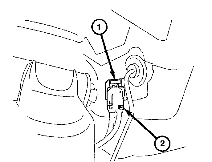 1. Connect the wheel speed sensor / brake wear indicator wire harness connector (2) to the body mount connector (1).