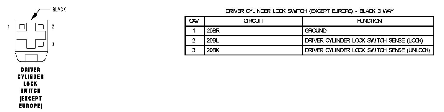 Driver Cylinder Lock Switch (Except Europe):