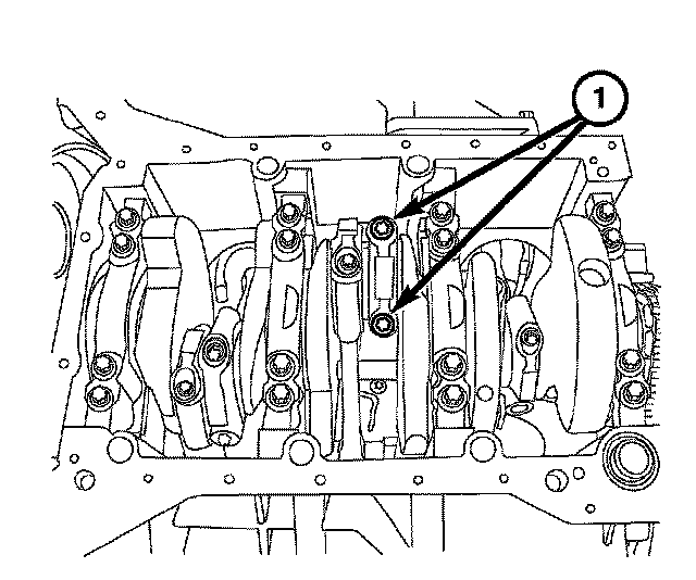 4. Remove the connecting rod bolts (1) and the connecting rod caps.