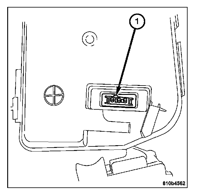 2. Disconnect the blower motor electrical connector (1) from the relief in the blower motor door.