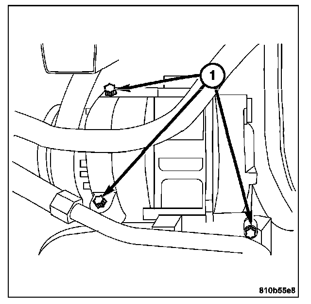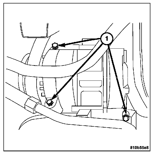 6. Remove the three compressor bolts (1) attaching it to the engine block.