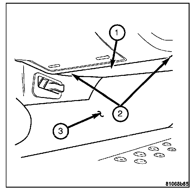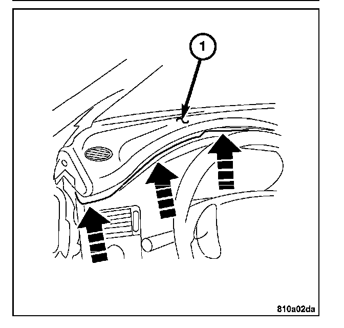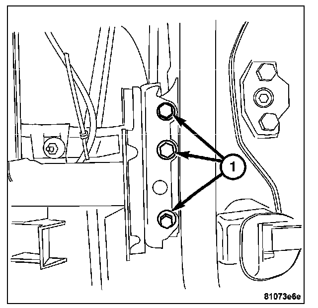 6. Install the bolts (1) attaching the instrument panel support to the A-pillars.