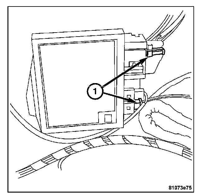 4. Install the harness connector on heater core temperature sensor located on the front of the HVAC housing. Then install the evaporator temperature sensor (1) to the HVAC case.