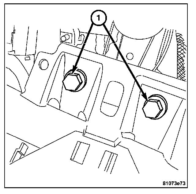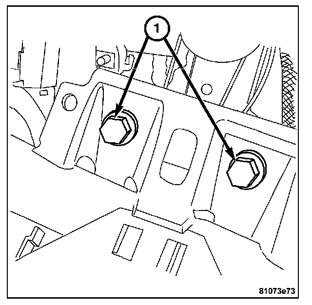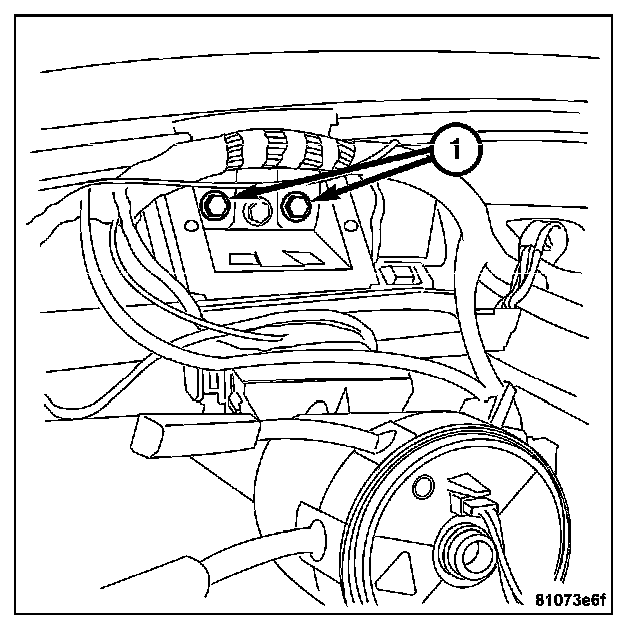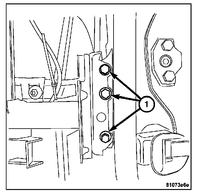 8. Install the bolts (1) attaching the instrument panel support to the front of the vehicle bulkhead.