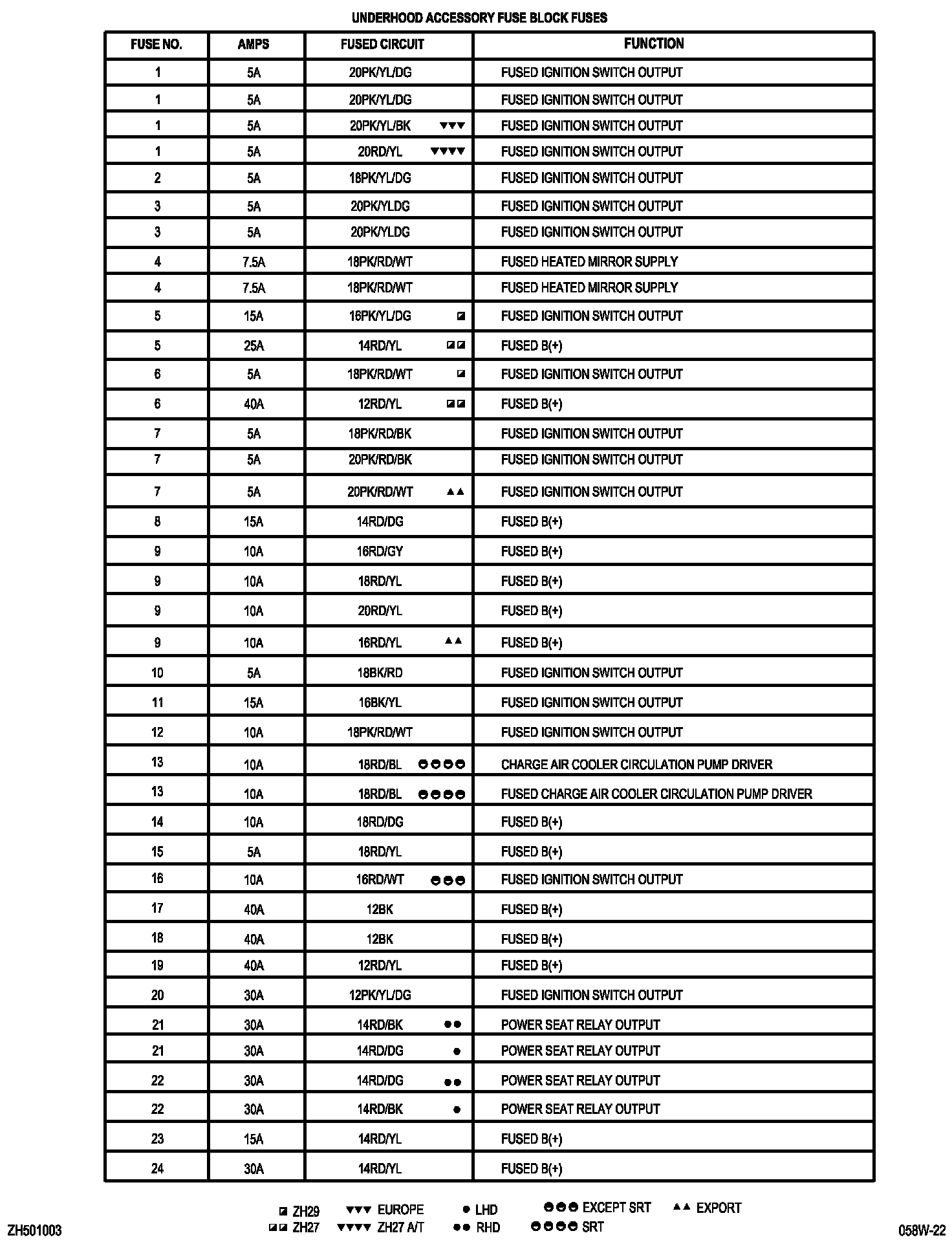 Fuse Information Table (Fuse 1 - Fuse 24):