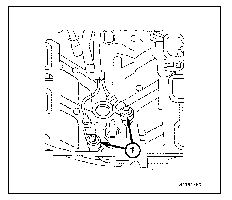 2. Disconnect the wire harness connectors at the knock sensors (1).