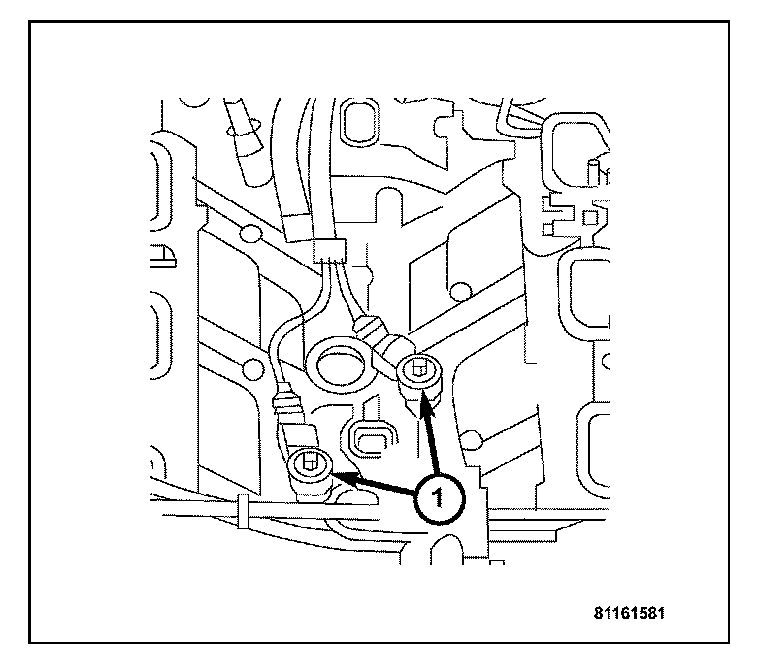 2. Install the knock sensor retaining bolts. Tighten the bolts to 20 N.m (15 ft. lbs.).
