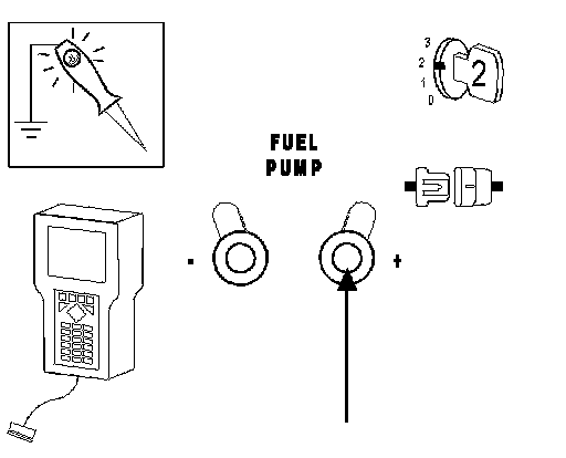 Verify that the fuel tank is not empty before continuing. Turn the ignition on. With the DRBIII, actuate the Fuel Pump. Listen for fuel pump operation. Stop All Actuations.