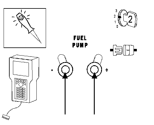 Note: Check connectors - It is critical that the connector is free from any signs of corrosion or deformities. Clean/repair as necessary. With the ignition on. Using a 12-volt test light connected across the Fuel Pump harness connector. With the DRBIII, actuate the Fuel Pump.