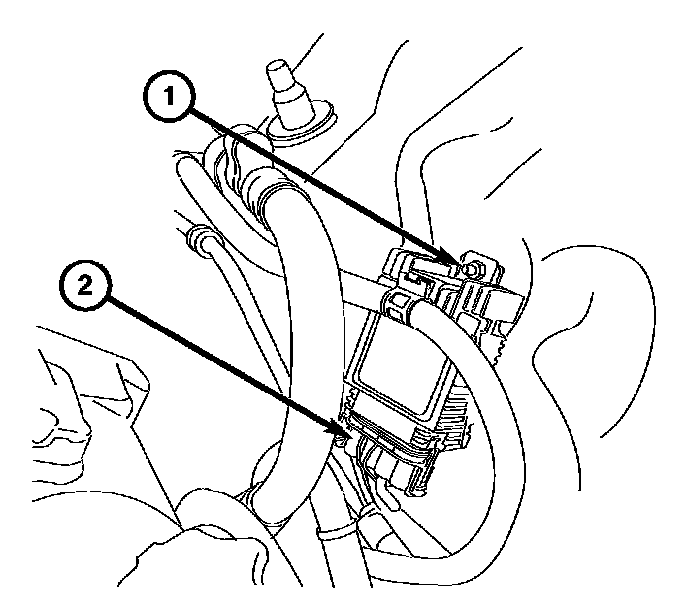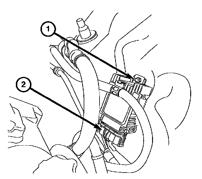 2. Disconnect the radiator fan control module harness connector (2).