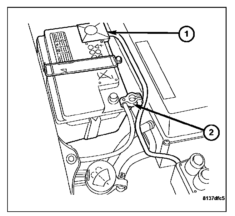 1. Disconnect the negative battery cable (2). Wait two minutes for the system capacitor to discharge before further service.