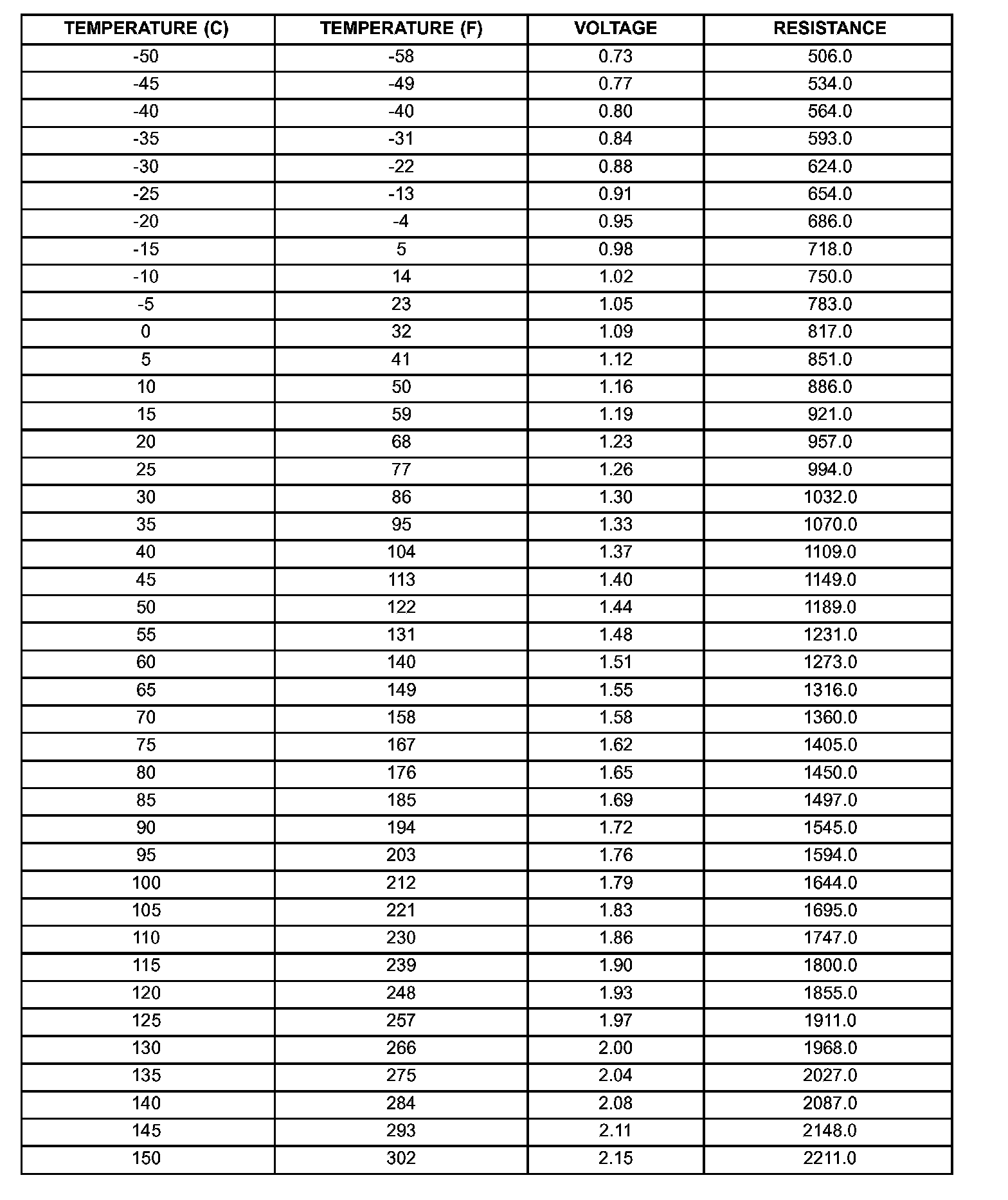 TRANSMISSION TEMP SENSOR SPECIFICATIONS