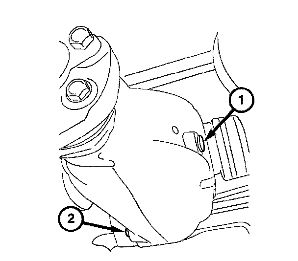 7. Install the differential housing drain plug (2). Tighten the drain plug to 50 Nm (37 ft. lbs.).