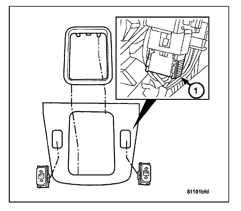 1. Install the power window switch to the shifter cover trim panel.