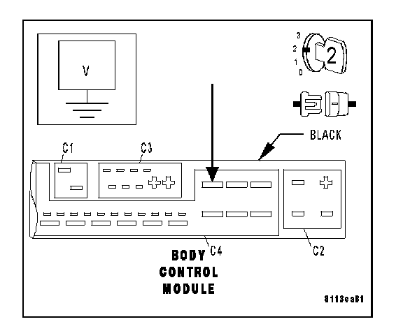 Measure the voltage at the BCM C4 harness connector Fused B(+) circuit.