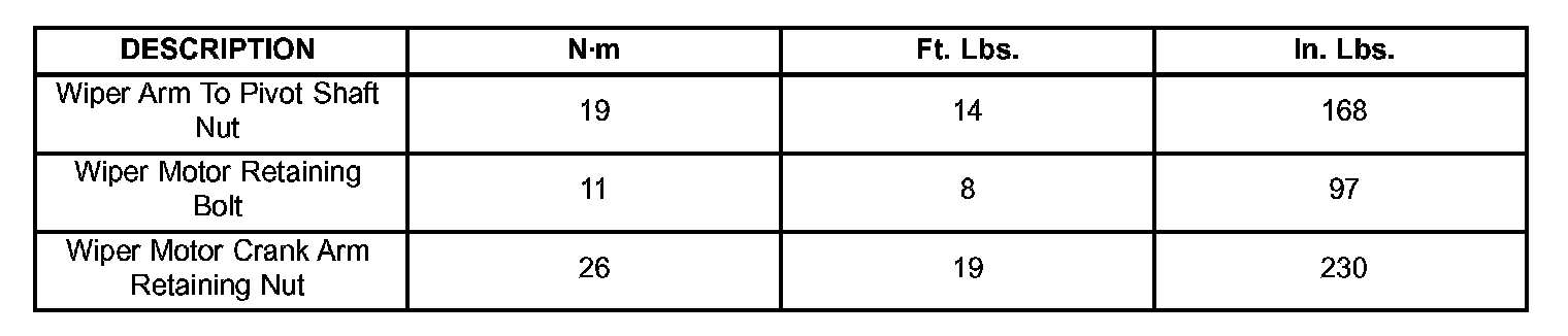 Wiper and Washer Systems: Specifications