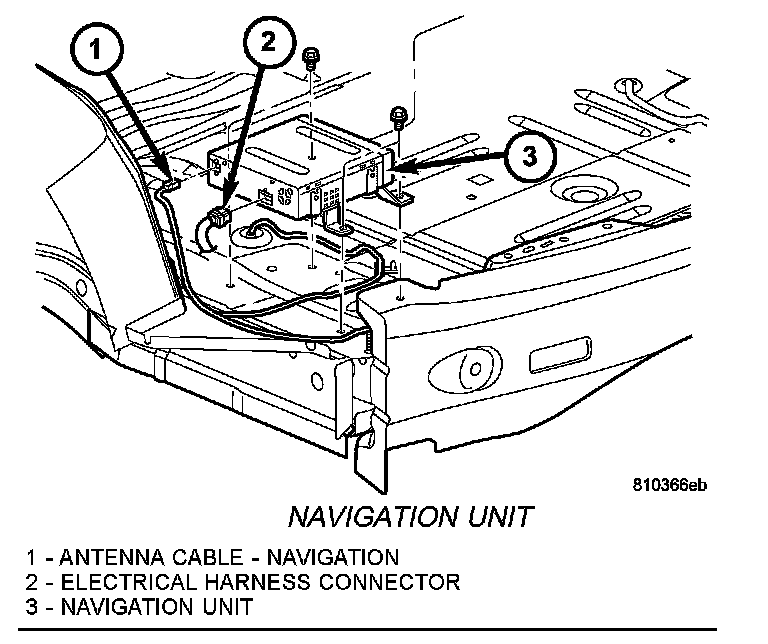 4. Disconnect electrical harness connector and antenna cable from navigat3ion unit.