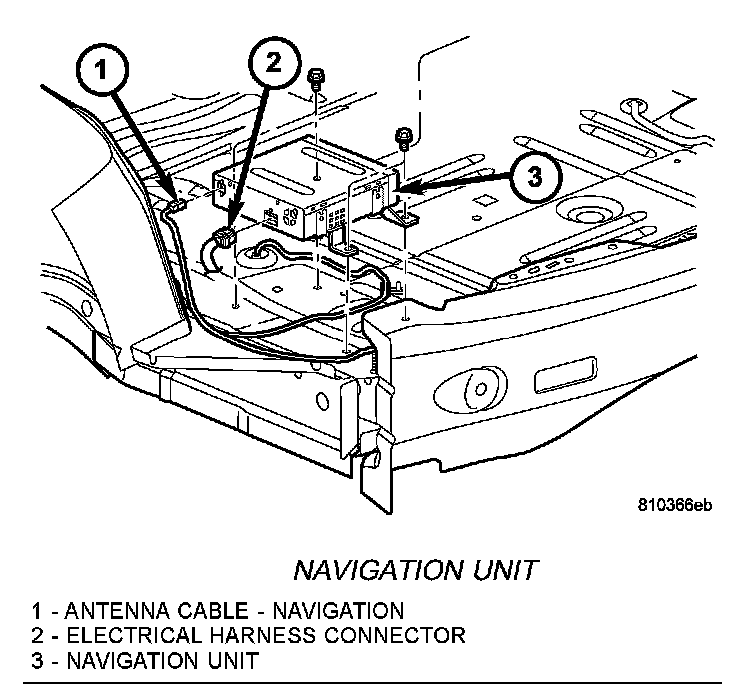 4. Disconnect electrical harness connector and antenna cable from navigation unit.