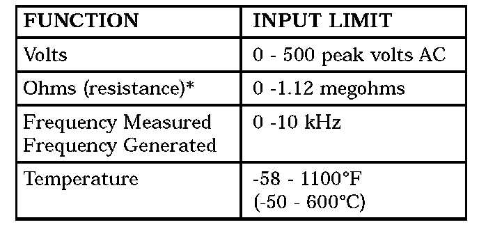 *Ohms cannot be measured if voltage is present. Ohms can be measured only in a non-powered circuit.