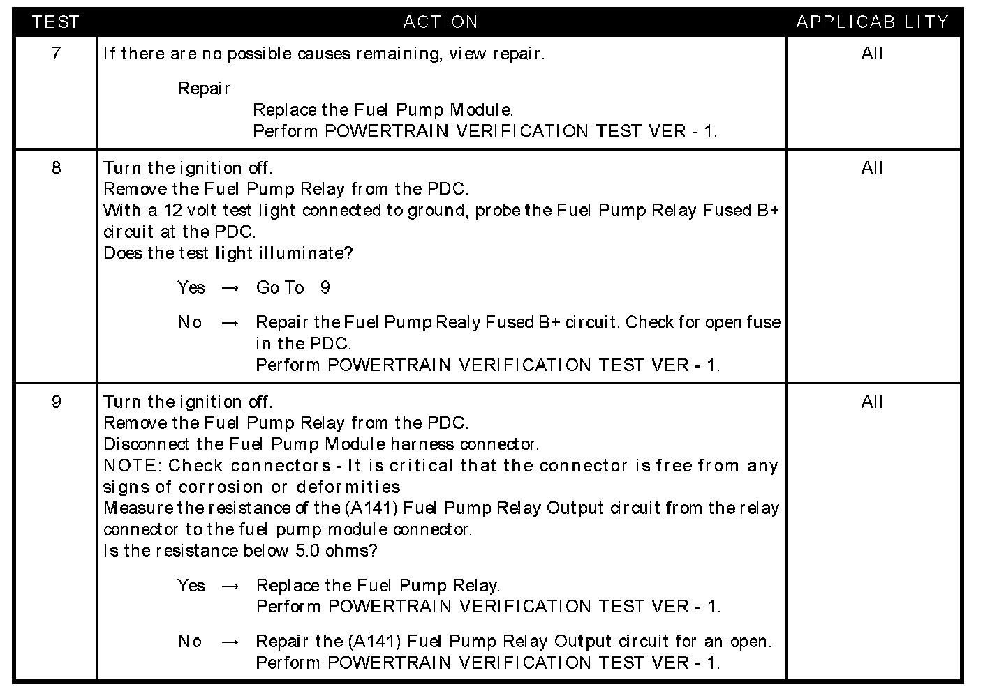- (A141) Fuel pump relay output circuit open