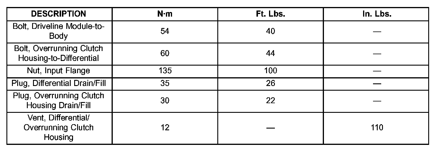 Torque Specifications: