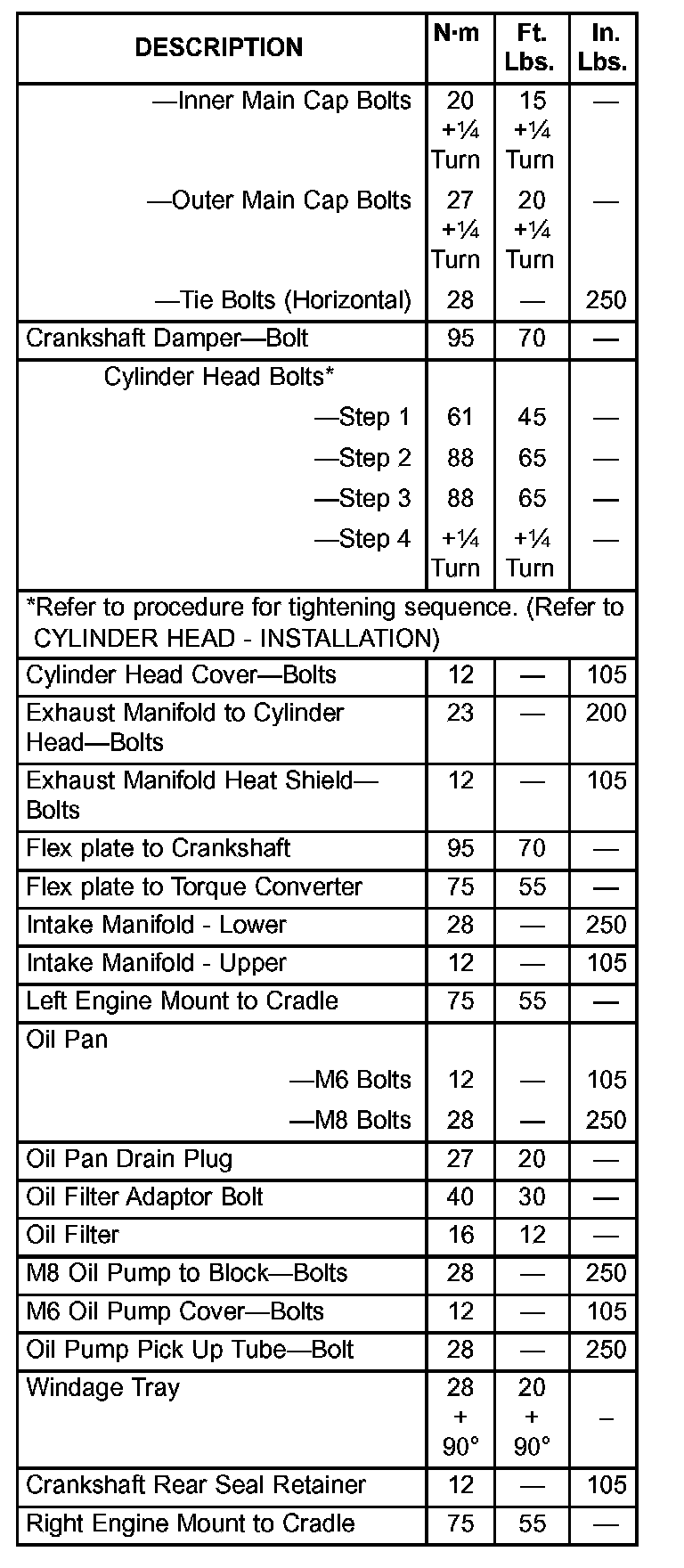 Engine Torque Specifications