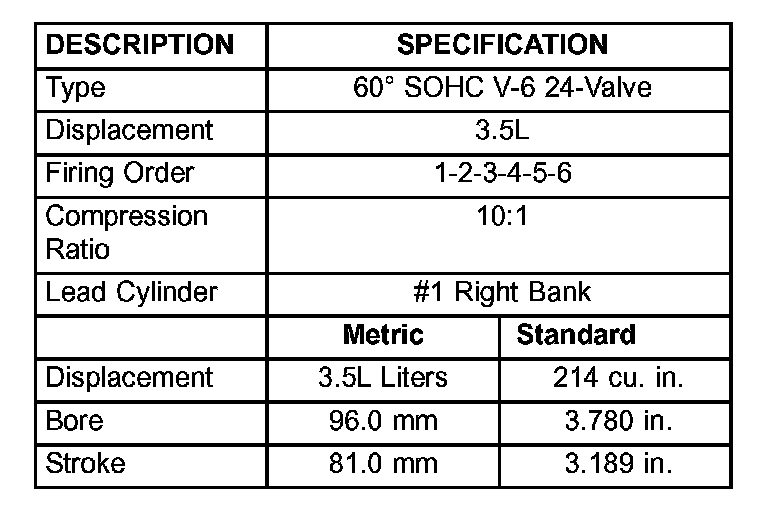 SERVICE SPECIFICATIONS - 3.5L ENGINE General Specifications: