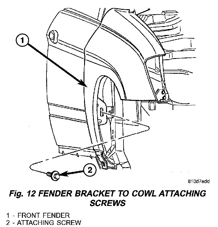 4. Remove outboard cowl grille/fender bracket screw (Fig. 12).