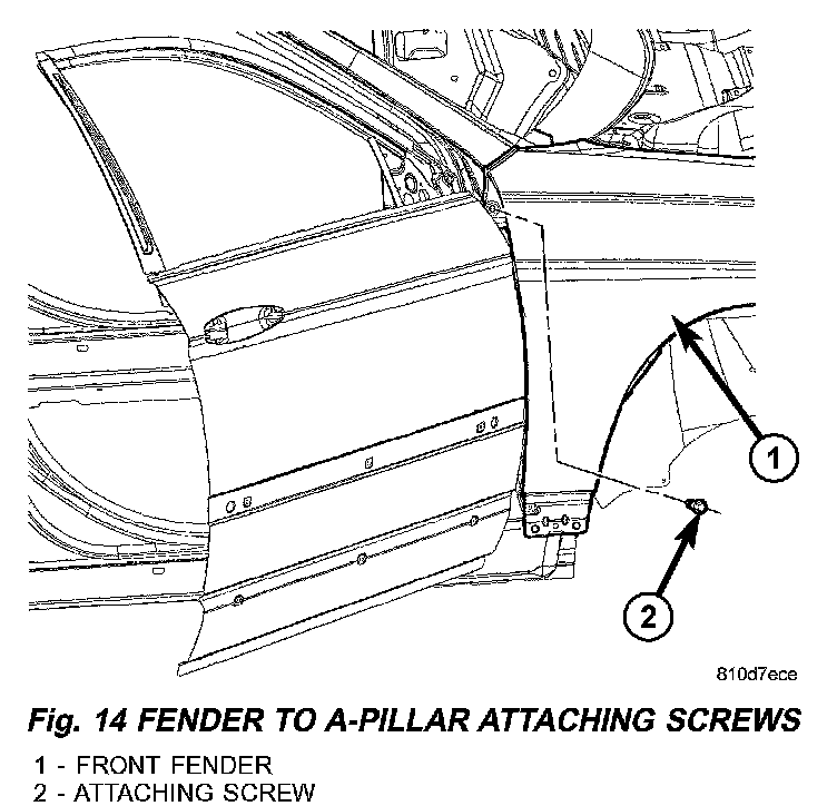 6. Remove fender screw to A-pillar (Fig. 14).