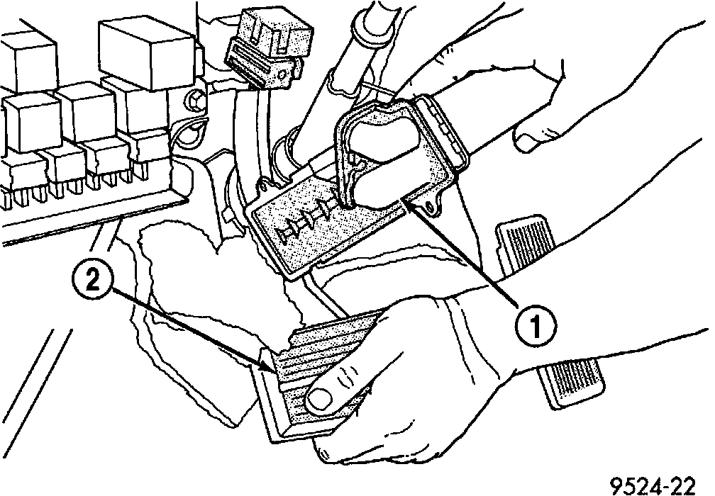 Note: Take the proper precautions to protect the carpeting below the heater core from spilled engine coolant and have absorbent toweling readily available to clean up any spills.