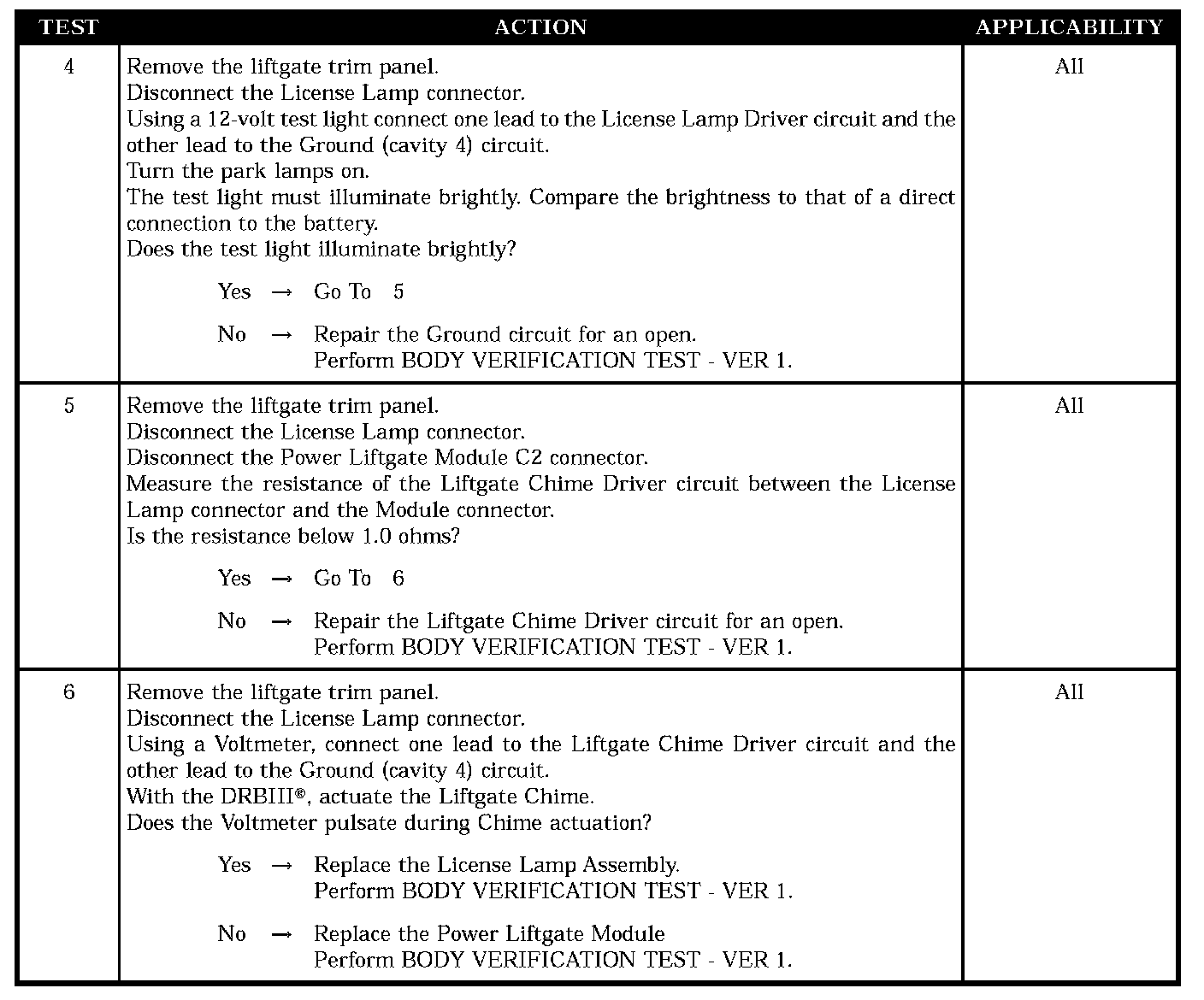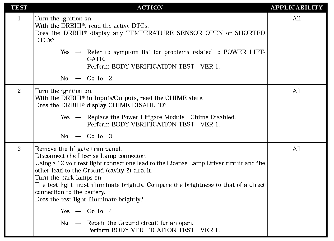 LIFTGATE CHIME INOPERATIVE
