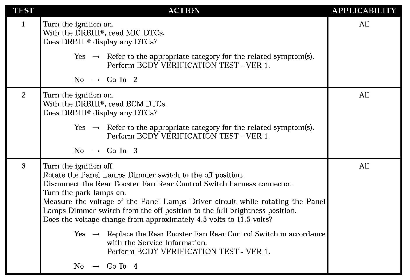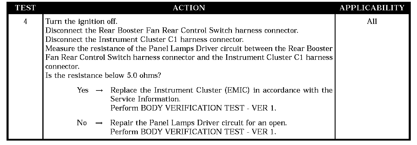 REAR BOOSTER FAN REAR CONTROL SWITCH BACK LIGHTING INOPERATIVE - ATC