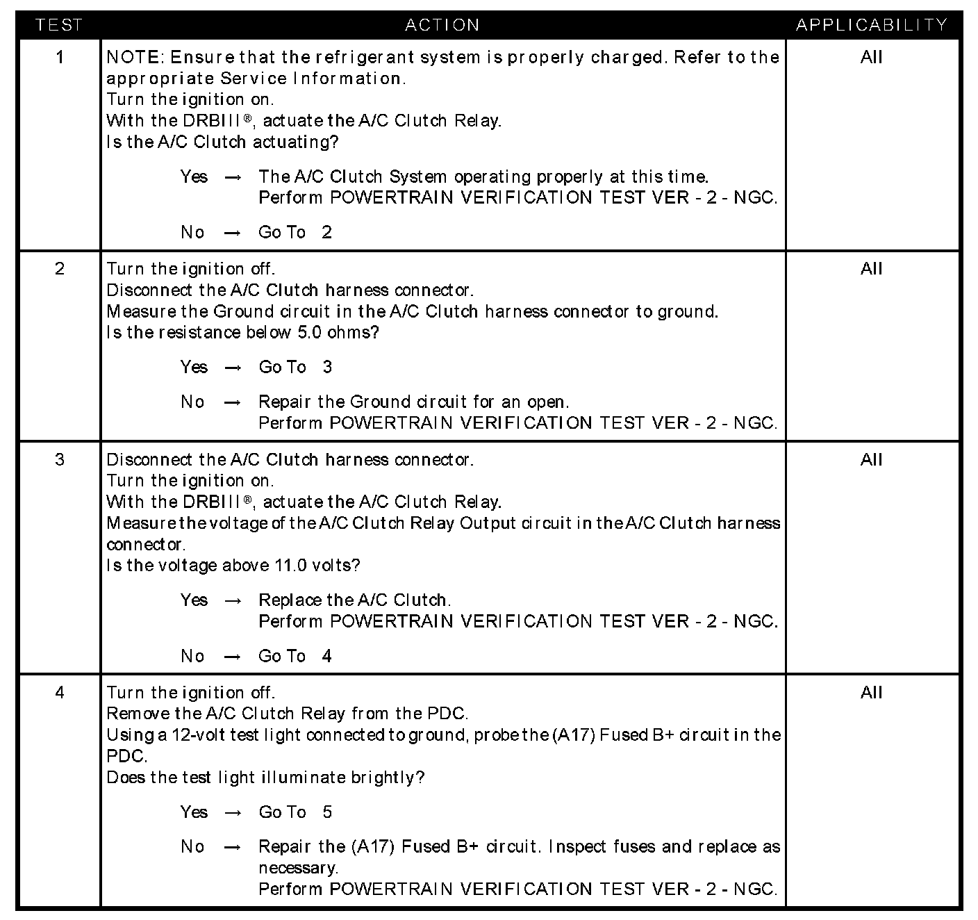 A/C clutch relay operation