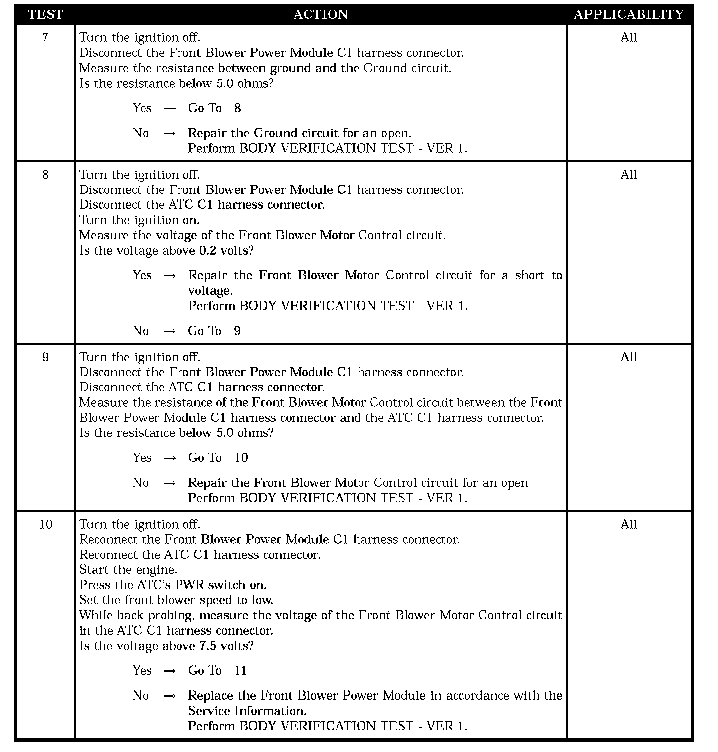 FRONT BLOWER MOTOR INOPERATIVE - ATC