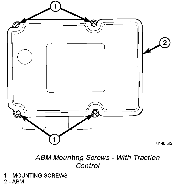 7. If equipped with traction control, install four screws attaching ABM to HCU. Tighten mounting screws to 2 N.m (17 in. lbs.) torque.