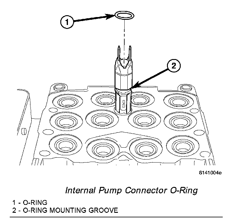 - Do not reuse internal pump connector O-ring or solenoid valve stem seals. They must be replaced to ensure proper sealing.