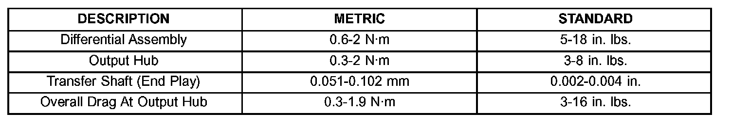 BEARING SETTINGS (END PLAY & TURNING TORQUE):