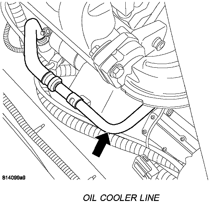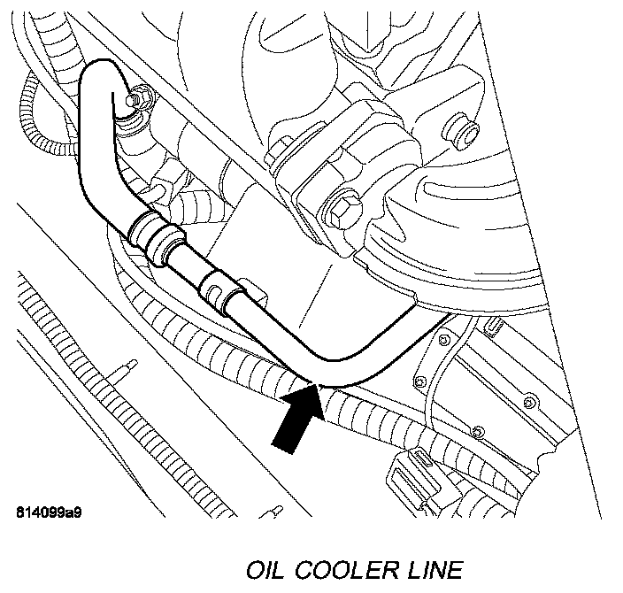 8. Remove bolt from oil cooler line bracket in front motor mount.