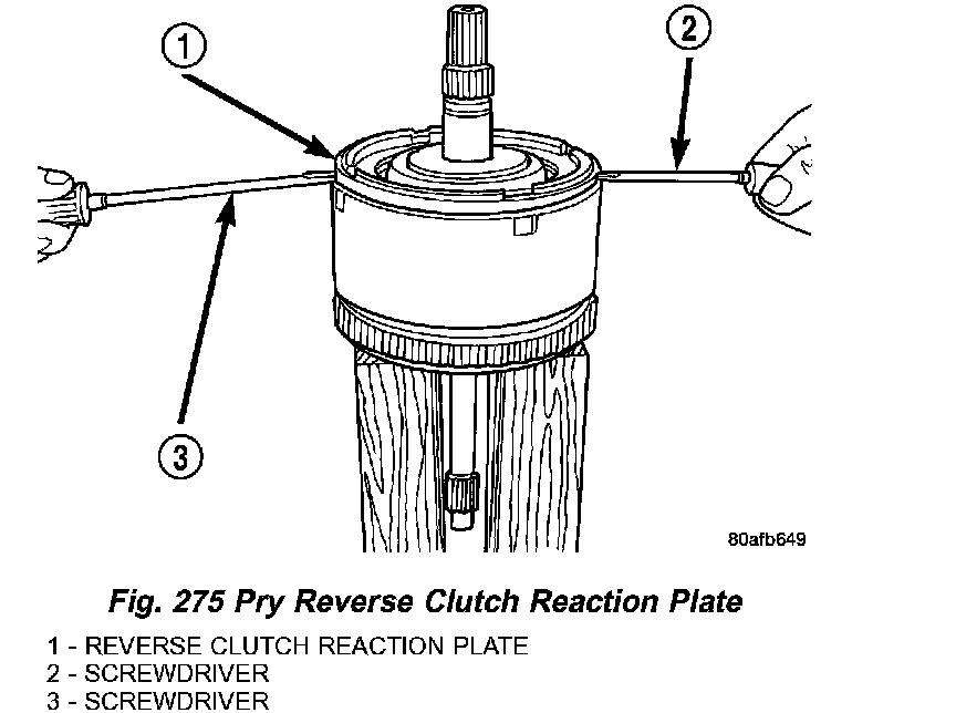 4. Pry up and remove reverse clutch reaction plate (Fig. 275).
