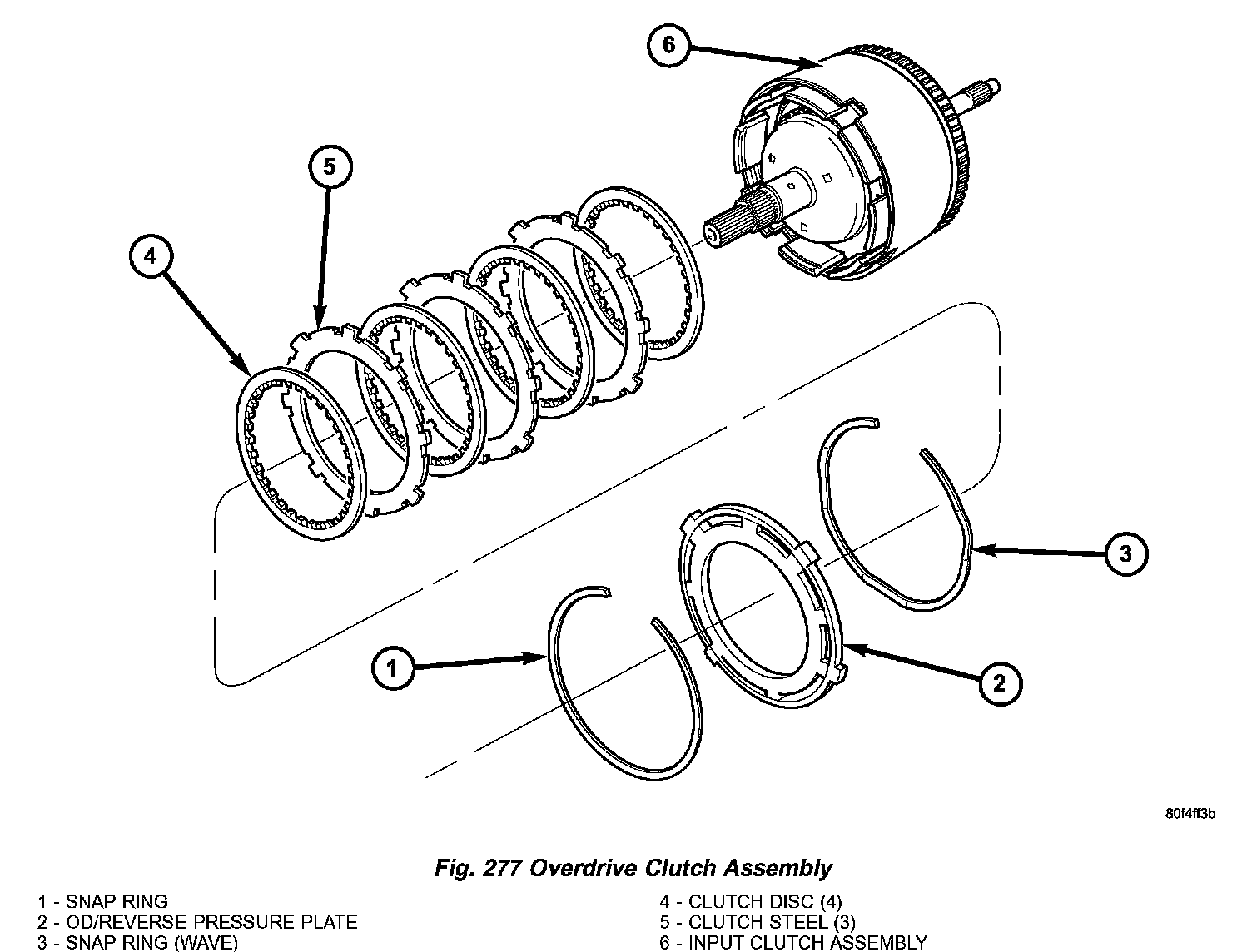 8. Remove OD/Reverse pressure plate wave snap ring (Fig. 277).