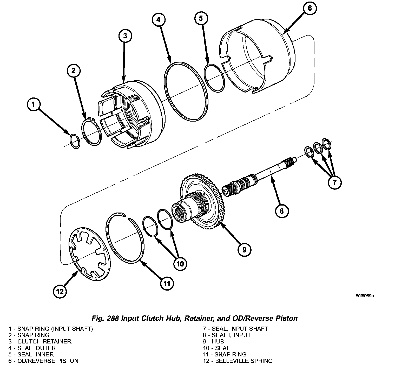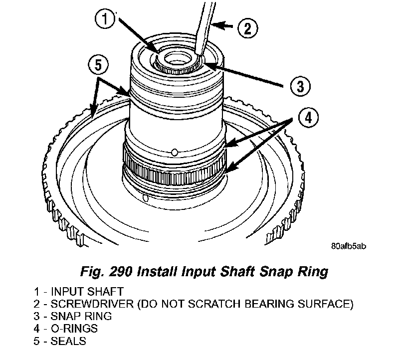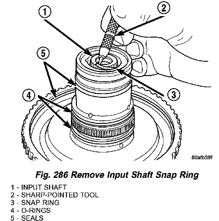 19. Remove input shaft to input clutch hub snap ring (Fig. 286) (Fig. 288).