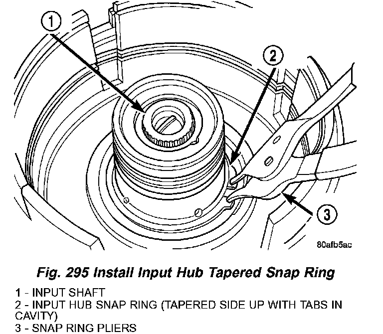 6. Install input hub tapered snap ring (Fig. 295) (Fig. 296).