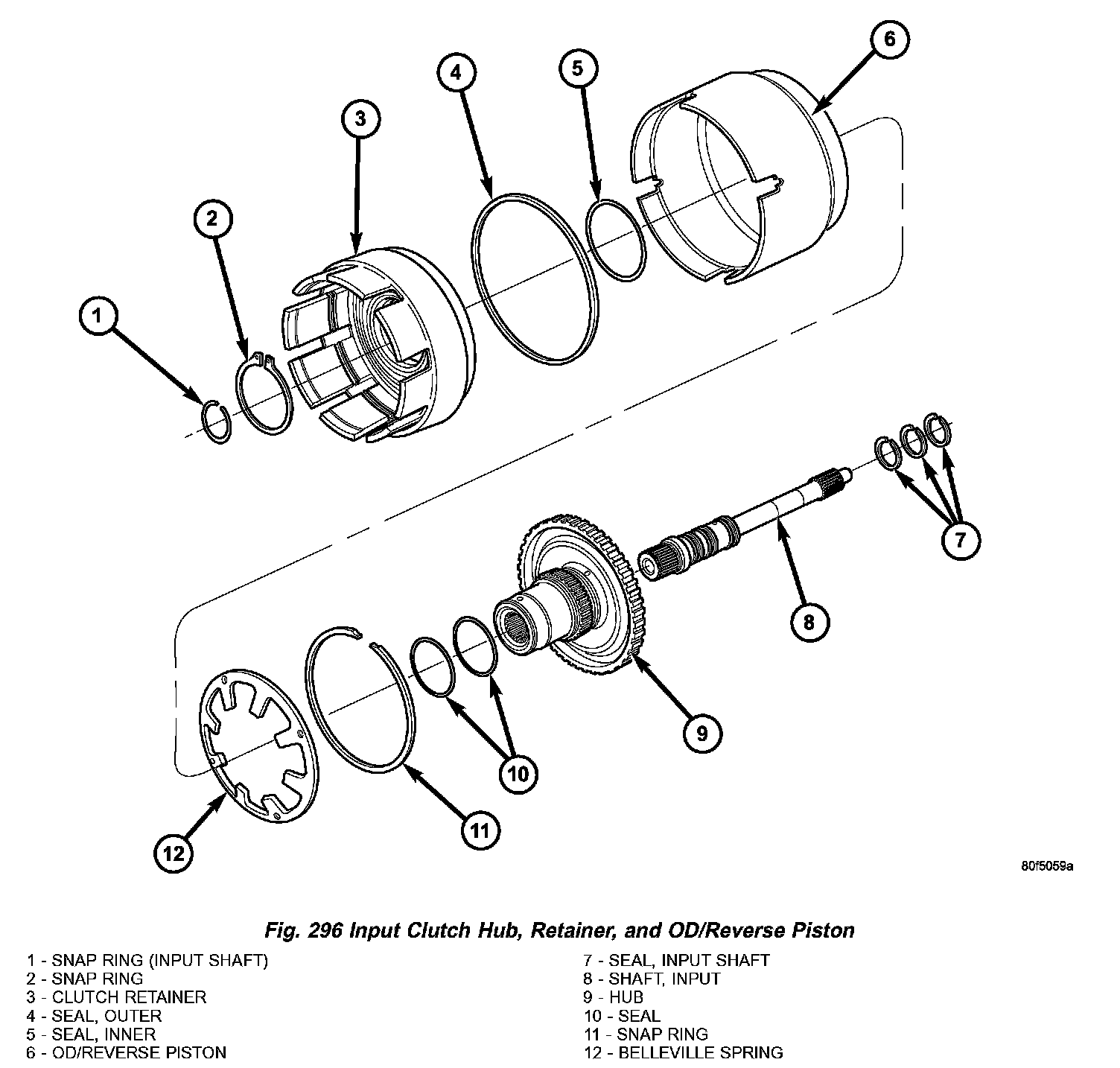 5. Install the input hub/shaft assy. to the OD/Reverse piston/clutch retainer assy. (Fig. 294).
