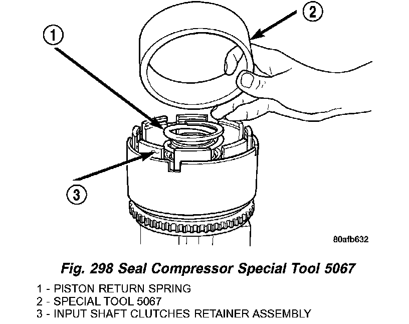 8. Install UD piston return spring and Tool 5067 as shown in (Fig. 298).