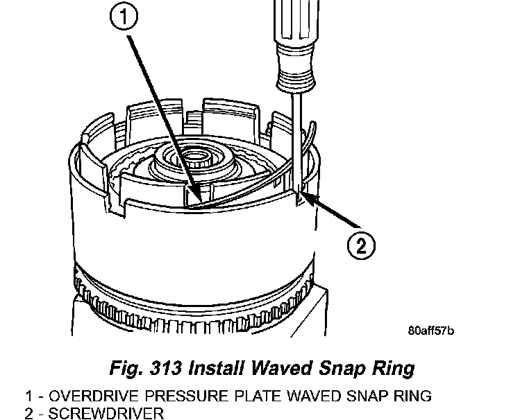 22. Install OD pressure plate waved snap ring (Fig. 313).
